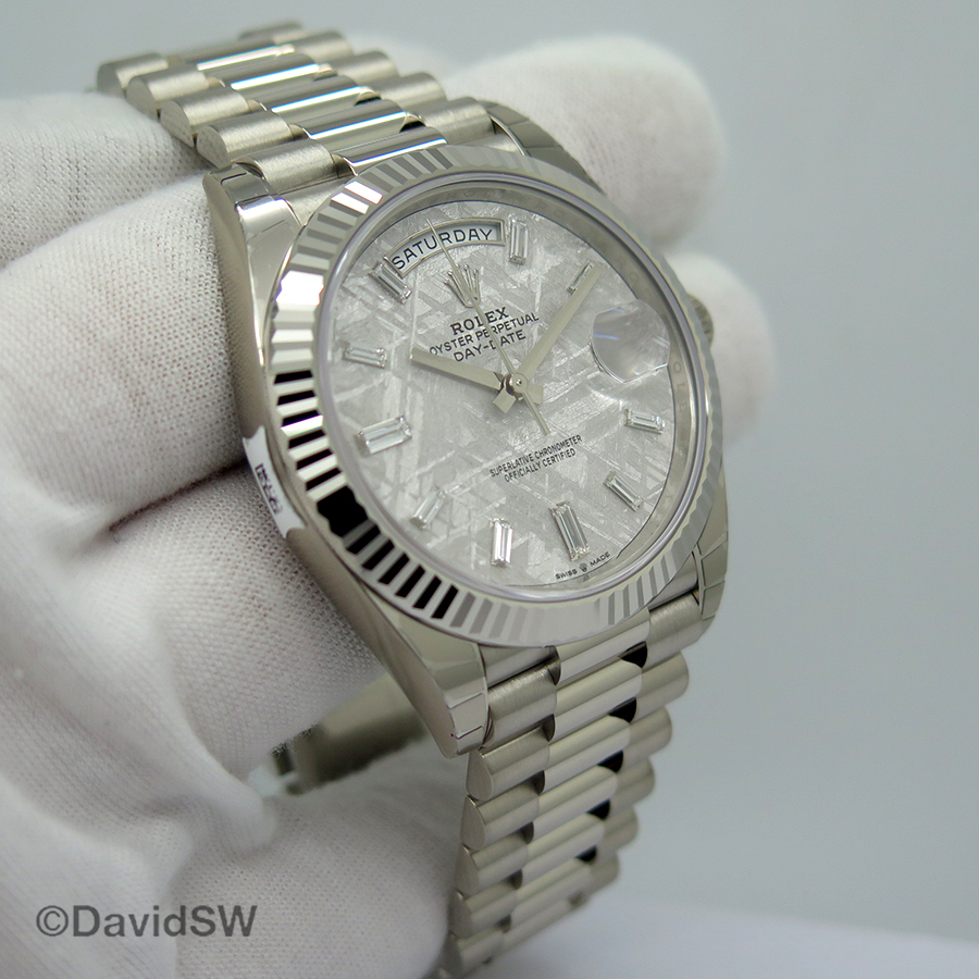 94+ Rolex Day Date Meteorite Dial White Gold Excelente. If playback doesn't begin shortly. This exquisite meteorite dial features 18kt white gold hands and baguette diamond index hour markers. Uhr mit origina über 74.000 zufriedene nutzer weltweit bewerten uns mit 4,8 von 5 sternen